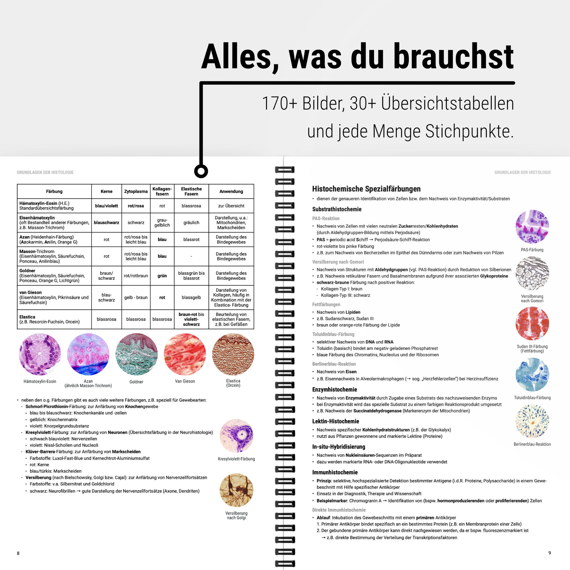 Die gesamte Histologie in zwei kompakten Skripten, die alle Grundlagen und Organsysteme abdecken. Mit klaren Erklärungen, anschaulichen Abbildungen und übersichtlichen Tabellen, die dir helfen, selbst komplexe Gewebe sicher zu erkennen.