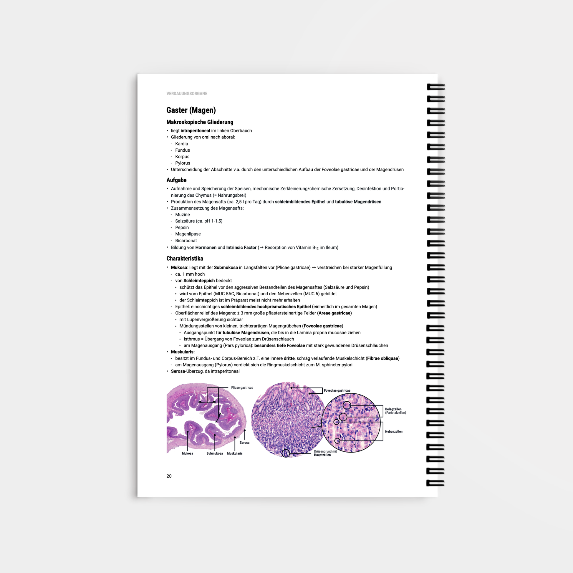 Dieses Skript vermittelt dir die detailreichen Inhalte der speziellen Histologie und führt dich Schritt für Schritt durch die großen Organsysteme. Mit klar strukturierten Erklärungen und anschaulichen Abbildungen lernst du, selbst komplexe Gewebe sicher zu erkennen und zuzuordnen.